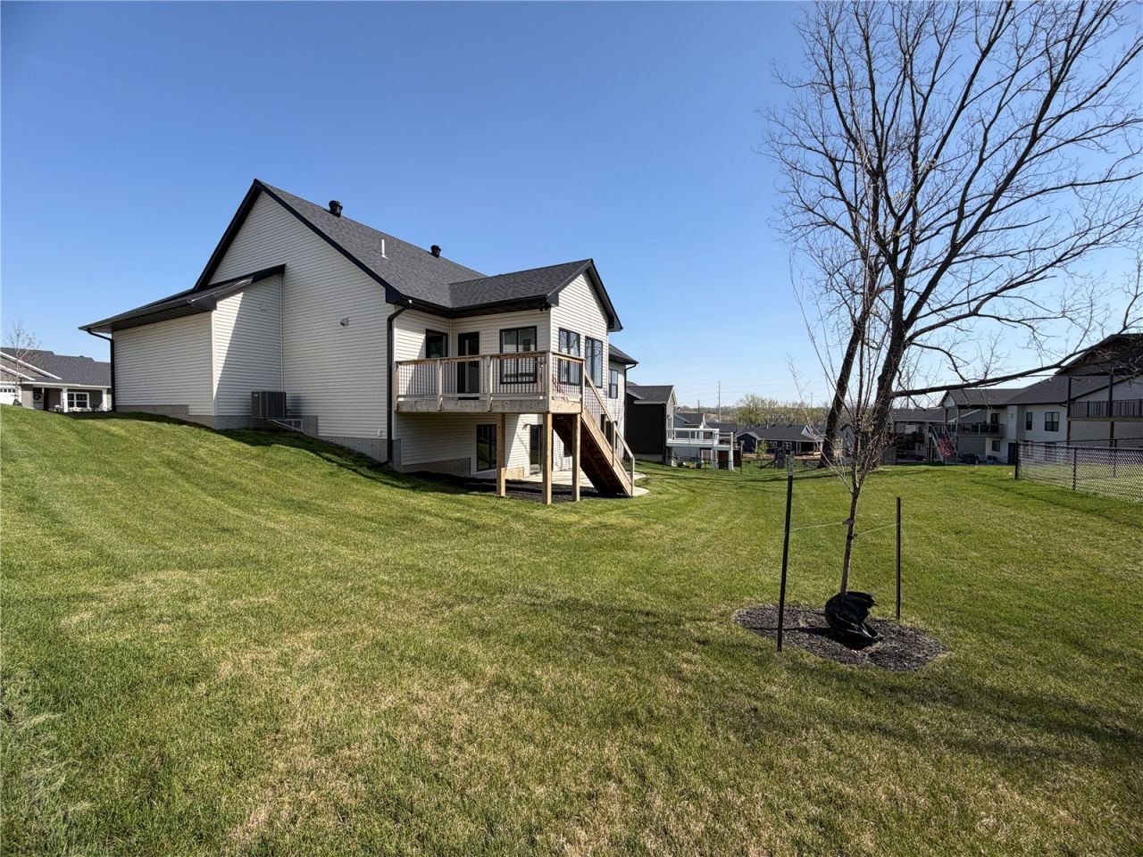 IMMEDIATE POSSESSION! This spacious floor plan features a four seasons room with steps down to the back yard. Kitchen has white cabinets with an island, subway tile backsplash, hard surface counter tops, pantry, and stainless steel appliances with gas range with hood vent. White trim and white doors. Black hardware and lighting throughout. Upgraded Lighting Package. Great room with gas fireplace with stone surround. Primary suite has a trey ceiling, walk-in closet and a private bathroom with tiled shower and double sinks. Custom swing shower door installed. Walkout lower level has a family room with a snack bar with cabinets and sink, bedrooms 4 and 5, and bathroom. Madden Addition features a paved walking trail and pedestrian bridge that connects to the Clear Creek Trail System. Some photos have been virtually staged.