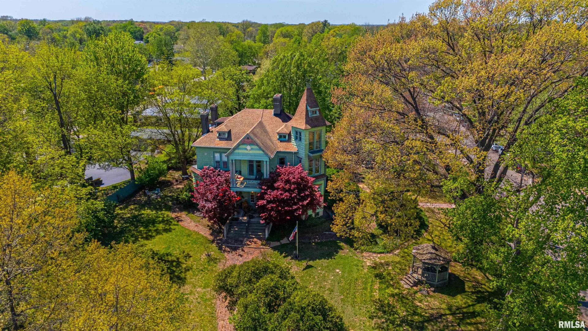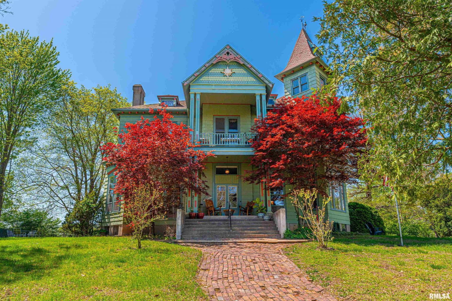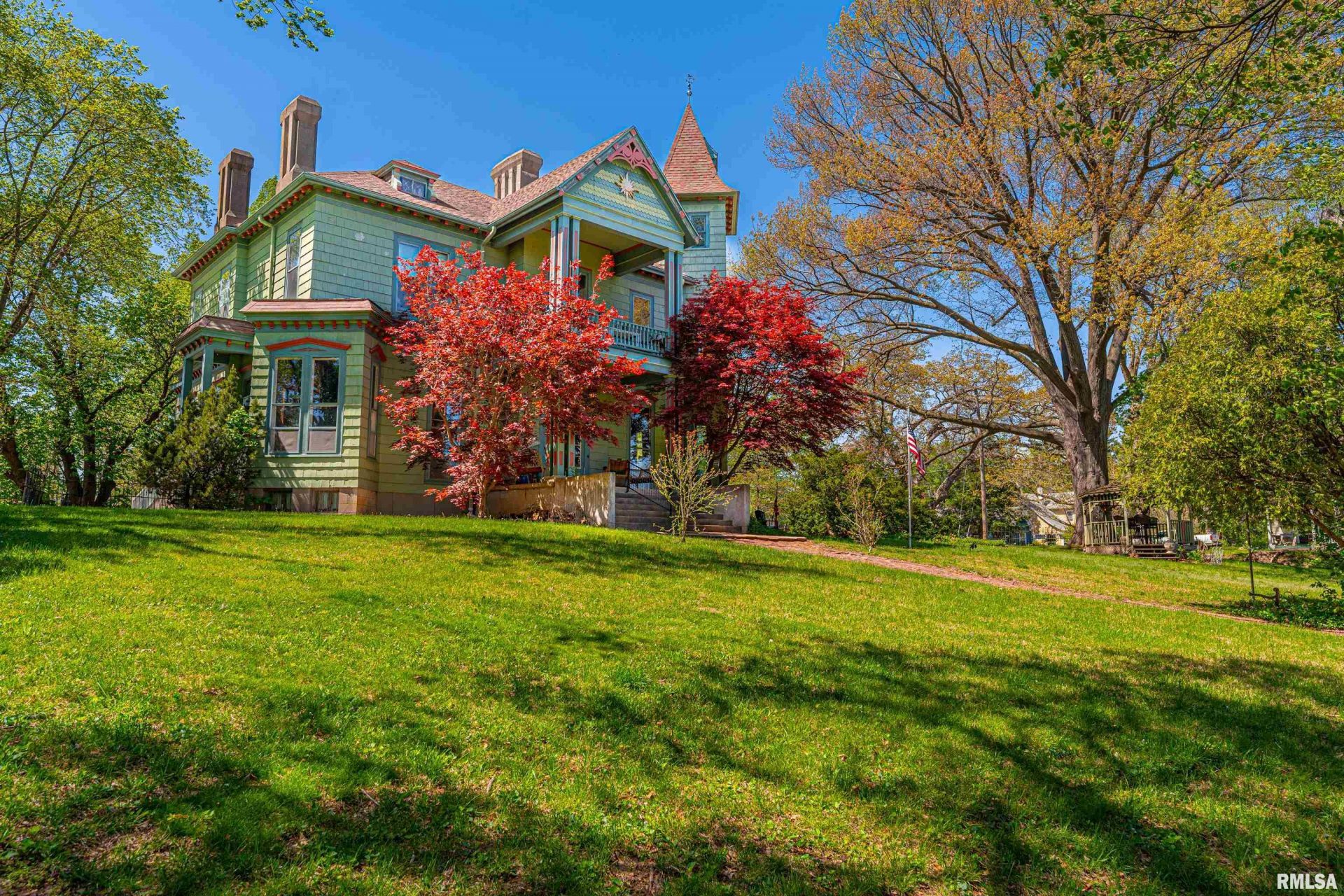 Captivating 5-bedroom, 5.5 bath cedar sided two-story mansion complete with EIGHT fireplaces perched upon the hill on a fabulous .84-acre lot with some of the best views of the river valley and downtown Petersburg! This historic home was initially surveyed by Abraham Lincoln in the mid 1800's and took three years to construct utilizing the highest caliber of construction materials! Featuring 14-inch foundation walls, a stunning walnut staircase, gleaming natural woodwork, pocket doors, majestic stained glass, transom windows, functional elevator (installed in 1952), twelve-foot ceilings, original plaster medallions, and three furnaces/central air conditioning units, this masterpiece is sure to thrill old house lovers! Main floor boasts a gorgeous expansive foyer, living and family room areas, gracious formal dining room, gorgeous equipped newer kitchen with an elaborate pantry, butcherblock as well as solid surface countertops, open concept shelving, top of the line range/oven, and a sprawling center island/breakfast bar, full bath with a double vanity in addition to a walk-in shower, and a comfortable 11X13 sunporch area. Upstairs, you will find four large bedrooms, four full baths, and undeniably convenient laundry facilities. Property also features a full usable basement, walk-up floored attic, amazing outdoor porch, patio, and gazebo areas, 2+ car detached garage with a tile roof in addition to an adjacent storage shed, and SO much more! In a class all by itself, truly!