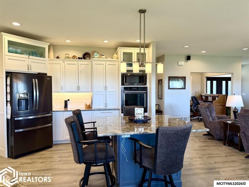 One-of-a-kind custom-built acreage home with stunning sunset views over wide-open farm fields. Enjoy multiple decks, including a grilling deck off the chef's kitchen featuring a gas cooktop, plenty of counter space, and custom cabinetry. Open floor plan with main-level primary suite offering a spacious bath and walk-in closet. Also, a main-level game room includes a wet bar (with a unique martini-shaped sink) and walkout deck overlooking the fields. Walkout lower level features a large family room with kitchenette, three bedrooms, two 3/4 baths, storage room, and workshop. Three-car garage and thoughtful design throughout. A rare opportunity to own a beautifully crafted acreage with exceptional indoor-outdoor living!