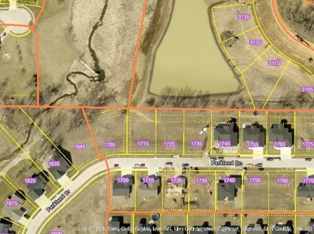 Walkout Lot. Private backyard backs up to open space, detention pond, and trees. Single family lot ready to build on in an established development. Ely is a great location with easy access to Cedar Rapids and the Corridor. Street address is 1725 Parkland Drive.