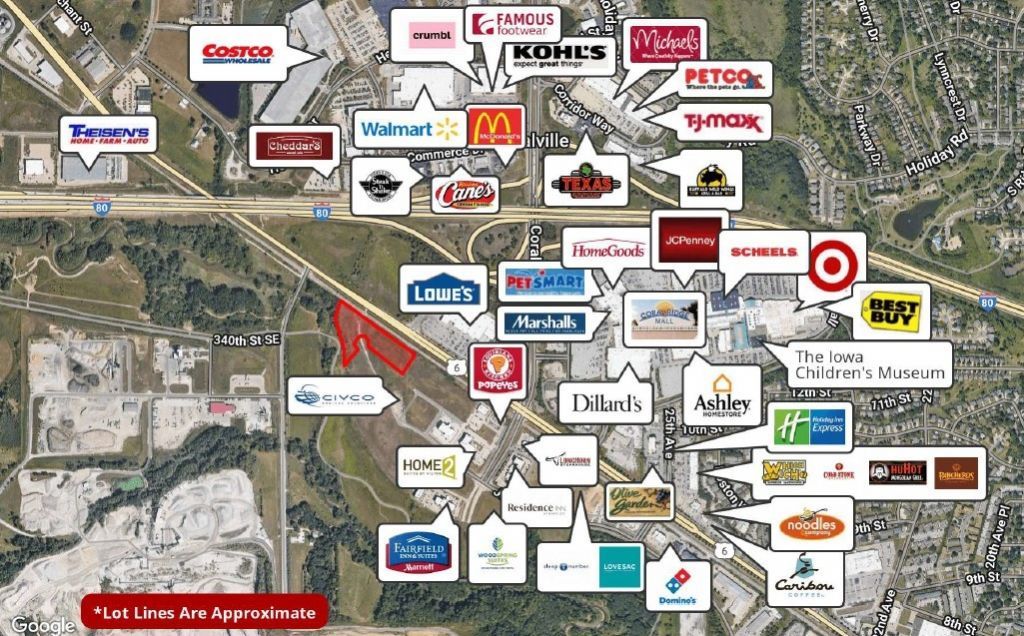 Take advantage of this exceptional opportunity to secure a shovel-ready commercial parcel in a high-growth area of Coralville. This lot offers excellent accessibility with close proximity to Hwy 6 and the I-80/I-380 interchange?ideal for a range of commercial or light industrial users (subject to City approval). Strategically positioned just south of Lowe's Home Improvement and directly east of the new CIVCO Medical Solutions facility, this property benefits from strong neighboring anchors and sustained development momentum. All utilities are available at the site, ensuring a smooth path from acquisition to construction. Whether you're expanding your operations or launching a new business, this site offers visibility, connectivity, and long-term value in a proven commercial corridor.